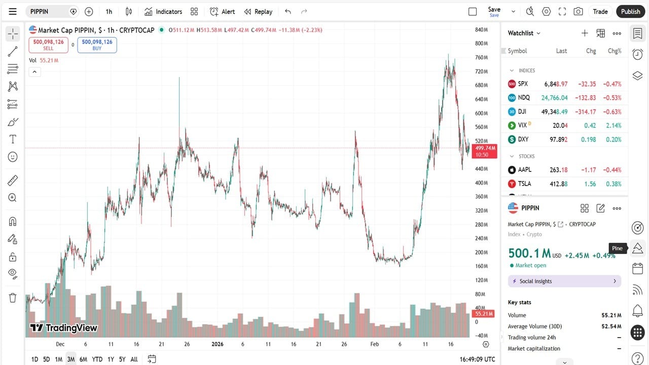 Market Momentum - With a circulating supply of roughly 1 billion tokens, Pippin has managed to capture a market cap that recently hovered around the $500 million mark.